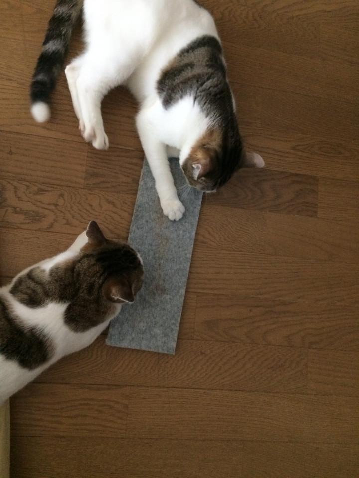 爪とぎ早く付けててね、パパ。