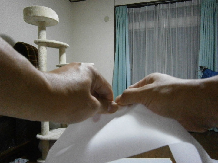 今回購入した障子紙はプラスチック製とありますが、正確にはパルプ(要は紙?)を両面からポリ系の素材で挟み込んでいるとの事です。