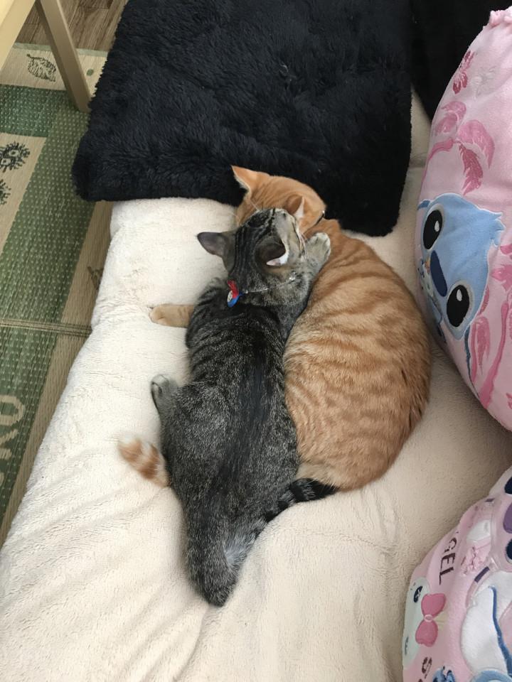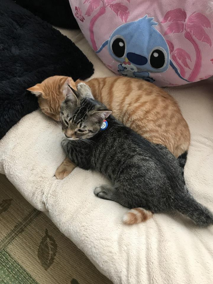 長男 カイン 2017年3月7日 茶虎 去勢済み ♂ マイクロチップ済み フード ヒルズk/d腎臓ケア 朝晩ラプロス 1日60g 次男 アベル 2017年4月22日 雉虎 去...