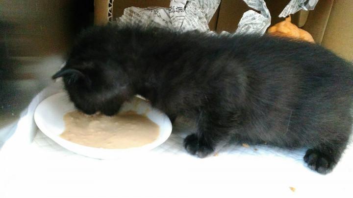 ただ、ここはしっかりと離乳に取り組む時期なので、ミルクは少しにして後は離乳食の缶詰とドライフードのふやかし、少量の小さいドライフードを与えています。