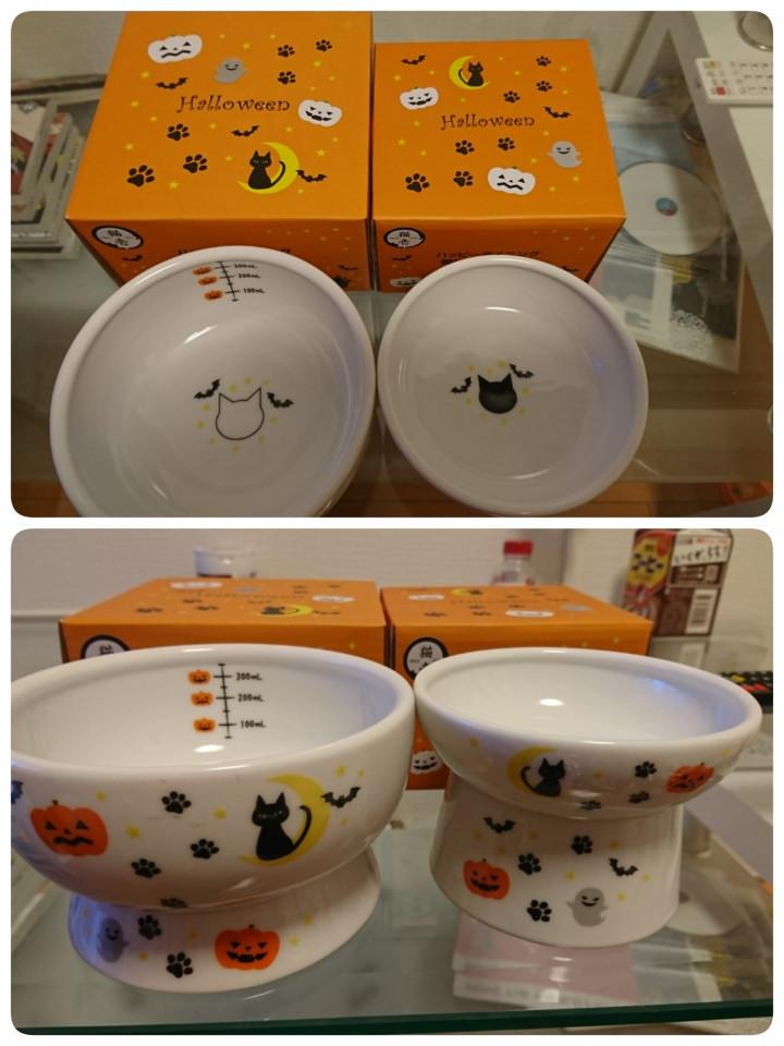猫壱のフードボウルとウォーターボウル(ハロウィンVer)
