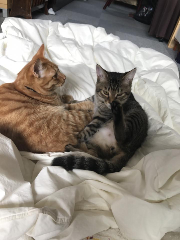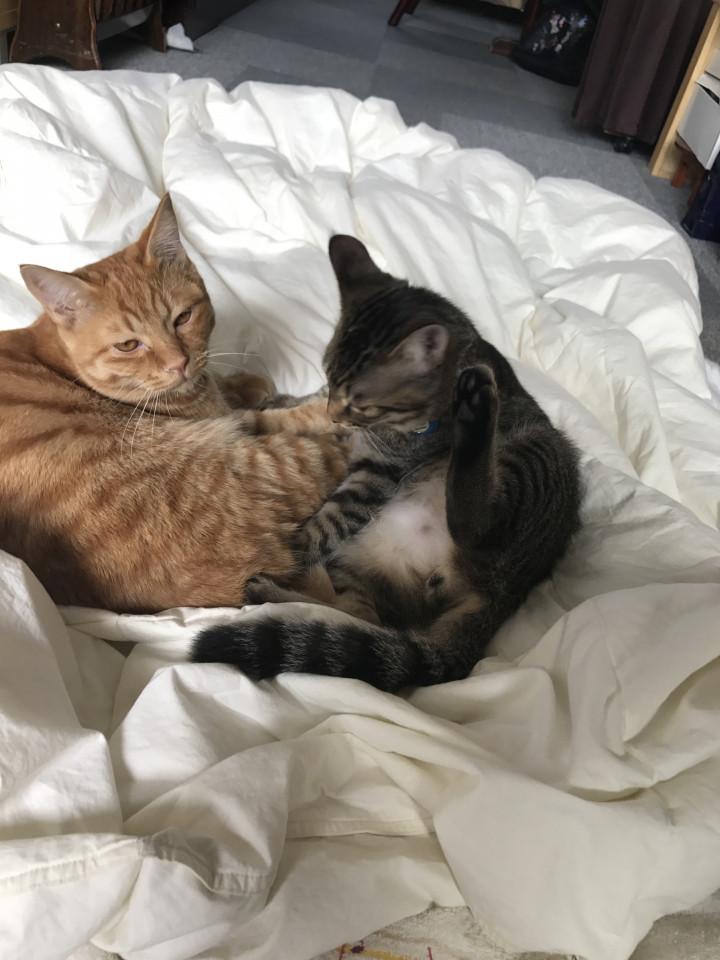 長男 カイン 2017年3月7日 茶虎 去勢済み ♂ マイクロチップ済み フード ヒルズk/d腎臓ケア 朝晩ラプロス 1日60g 次男 アベル 2017年4月22日 雉虎 去...