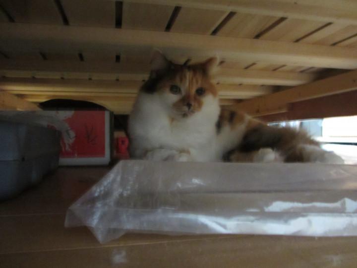 起きたらまたベッドの下に潜り込まれちゃいました(--