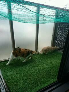 賃貸だから釘やら使えないので突っ張り棒を使いベランダに簡要キャットランを作りました。