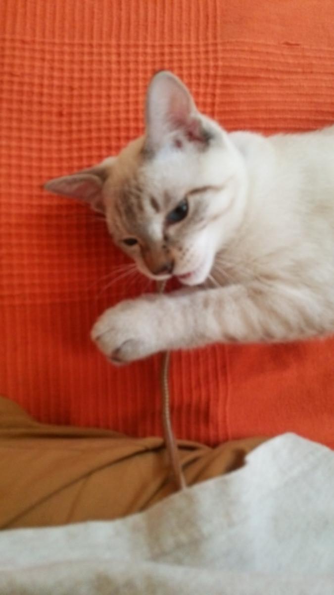 BBAのリラコの紐を引っ張って噛み倒して遊ぶおにぎりが。