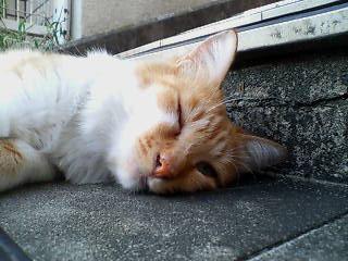 おおーい!! 階段なんかで熟睡するなよ!踏みつけそうになったじゃないか