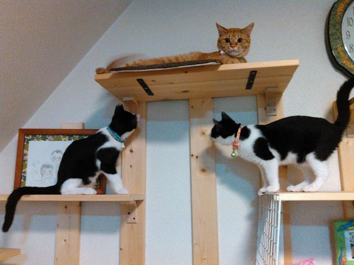 私が二階にいくと他の子もワラワラとついてきます。誠は来ないな。バロンは一番の遊び相手になるので子守りを任せたいのだけど、ドアを自由に開けちゃうので私がいるときでないと放置できません。愛ちゃんを放ってしまいますから。外からも勝手に開けちゃうのでガードしてます。