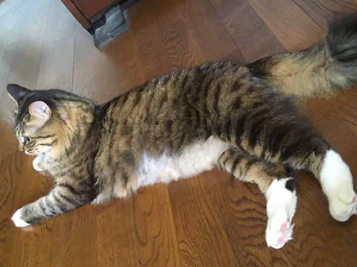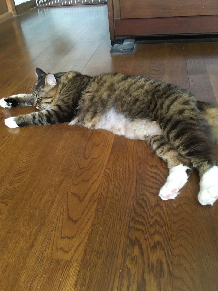 朝から病院に連れて行かれ💦お尻をイジられ💦帰って来るなり玄関でふて寝をするモミくんでした〜