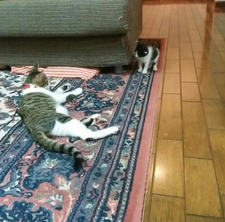 元気にちょこちょこ走り回り、さつきがお付きの係。よく面倒見てくれるので助かります(^^)v