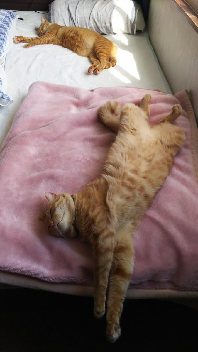 知ってか知らずか、久しぶりに暖かい1日だったので、むぎもゆずも日があたる主人のベットの上で日向ぼっこ
