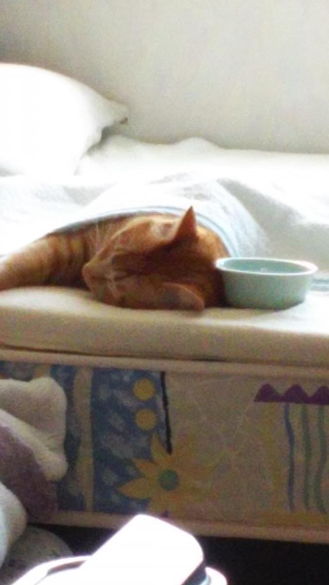 今朝、寒くて主人のベットの敷きカバーの中に入って寝てたゆずしゃん(笑)