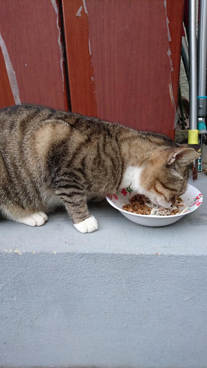 毎朝、地域猫3号が必ず、あさごはんを食べに来ます。