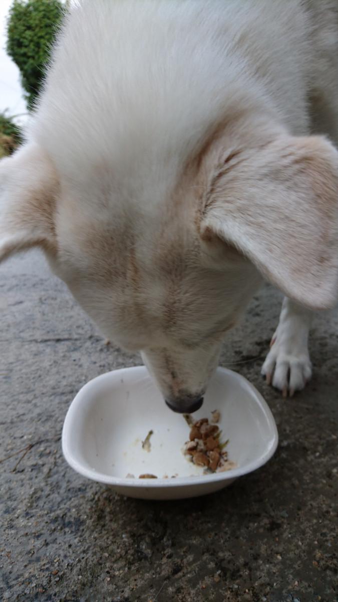 1号が食べ散らかした後を片付けて、コロタ君にもおすそ分け🎵