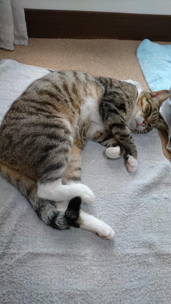 そして、使わないタオルをひいてから、タオルでごしごし拭いてあげました。