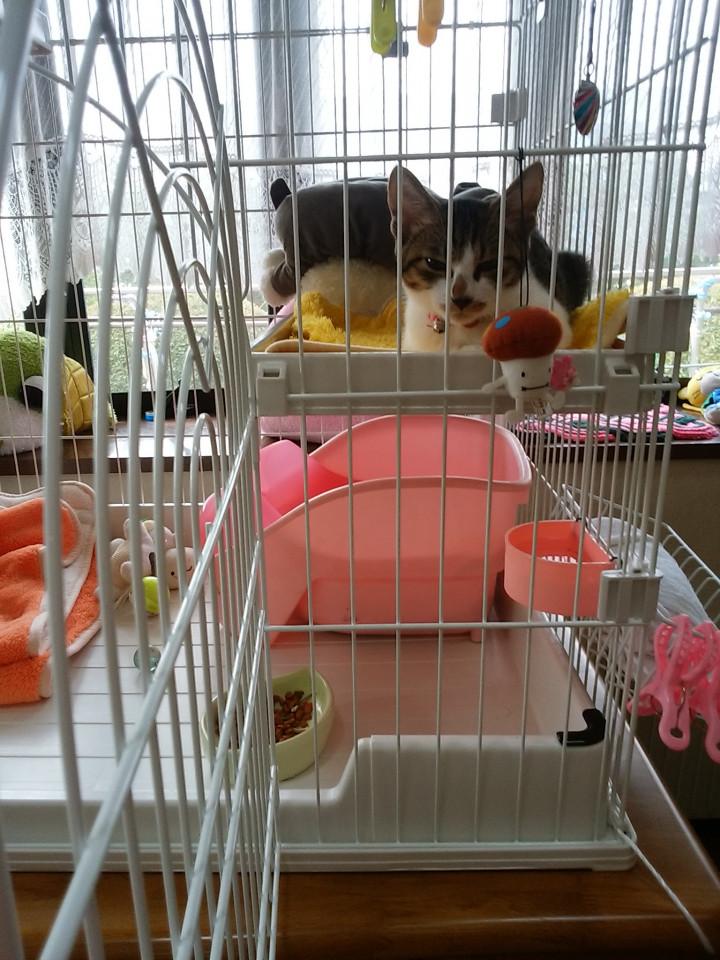 ゲージで、おとなしくしています 扉は開けておきます