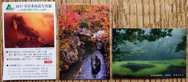 左;案内のハガキ。山岳写真セミナーが9日にあります。興味のある方はどうぞ。