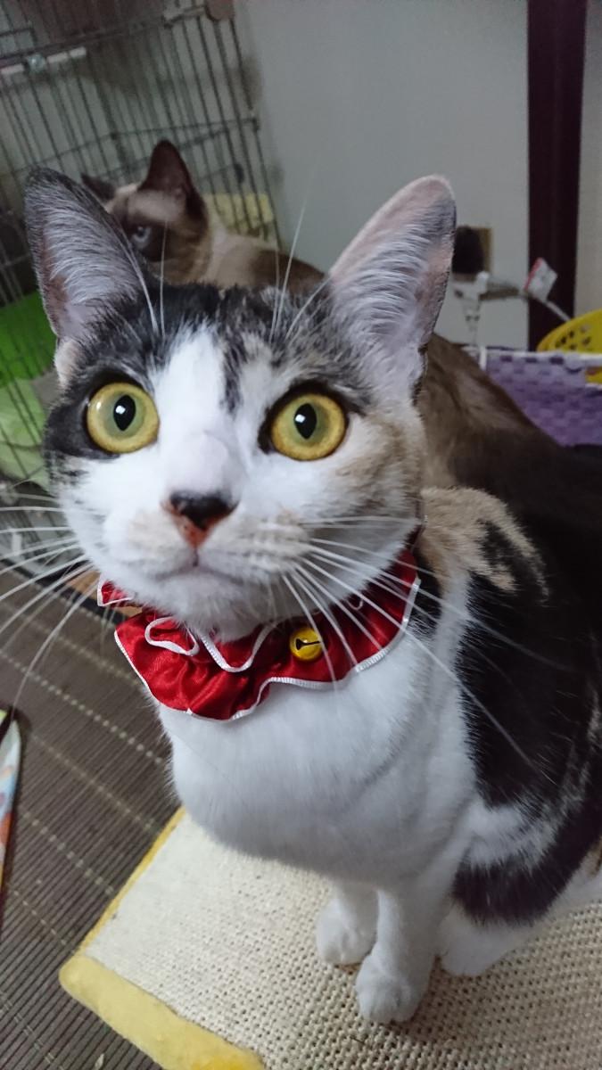 赤が似合うかと買ってみたら鈴が黄色やった。。