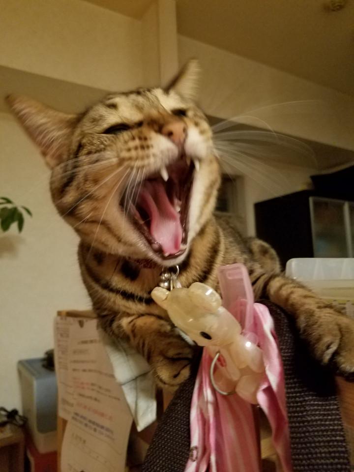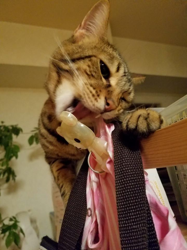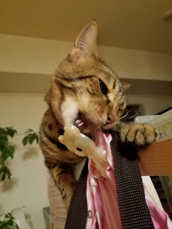 コリ(コリラックマの洗濯ばさみ)をガジガジ😋