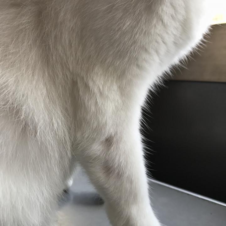 前あし他にある、脱毛部の原因は不明。甲状腺の異常は年齢的に考えられないとの事。