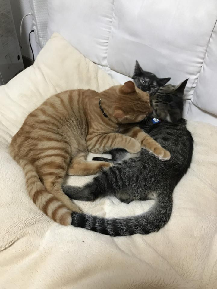 長男 カイン 2017年3月7日 茶虎 去勢済み ♂ マイクロチップ済み フード ヒルズk/d腎臓ケア 朝晩ラプロス 1日60g 次男 アベル 2017年4月22日 雉虎 去...
