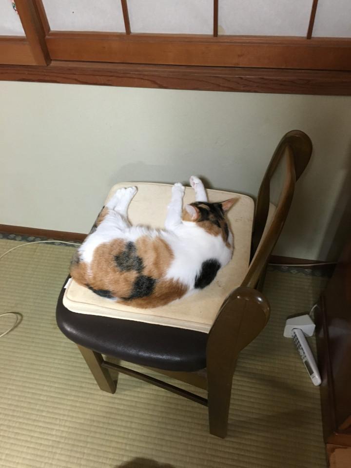 今、椅子に寝ているタマです。今夜はゆっくり寝た方が良いかもしれません。