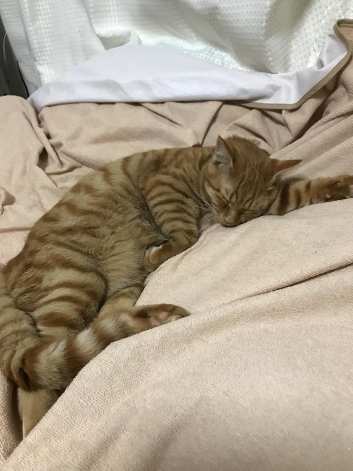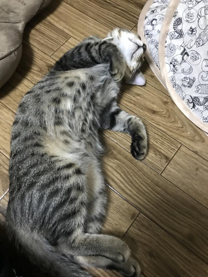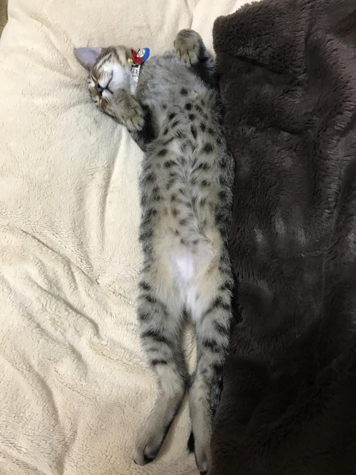 カインはあまりヘソ天して寝ない派ってもキャットタワーで主に寝てるからヘソ天したら落ちちゃう(笑)