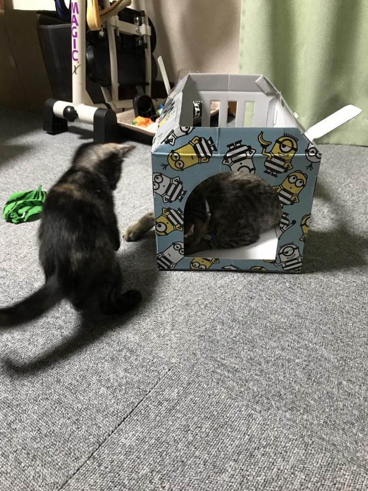 ミリオン箱で遊ぶ2匹(笑)