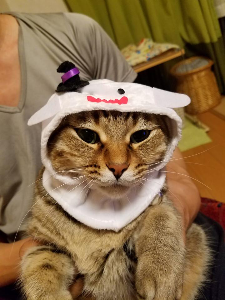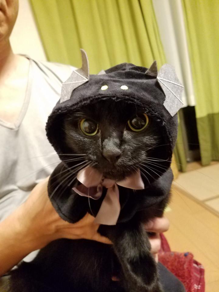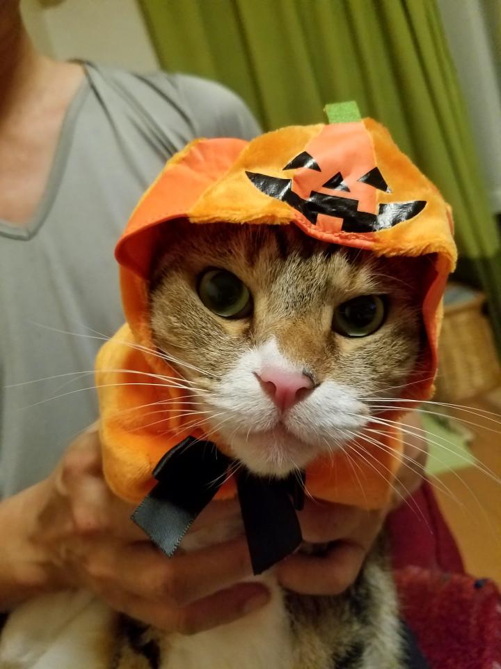 カボチャを被せたとたん一瞬だけ固まったので、ちょうどいい感じに撮れました😊