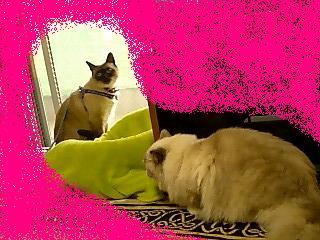 時々間近で顔を合わせて、お互いにびっくりしてシャーシャー言うわりに、威嚇やケンカは無かったので、仲良くなれる可能性、あるかも・・・・・ダッタライイナv