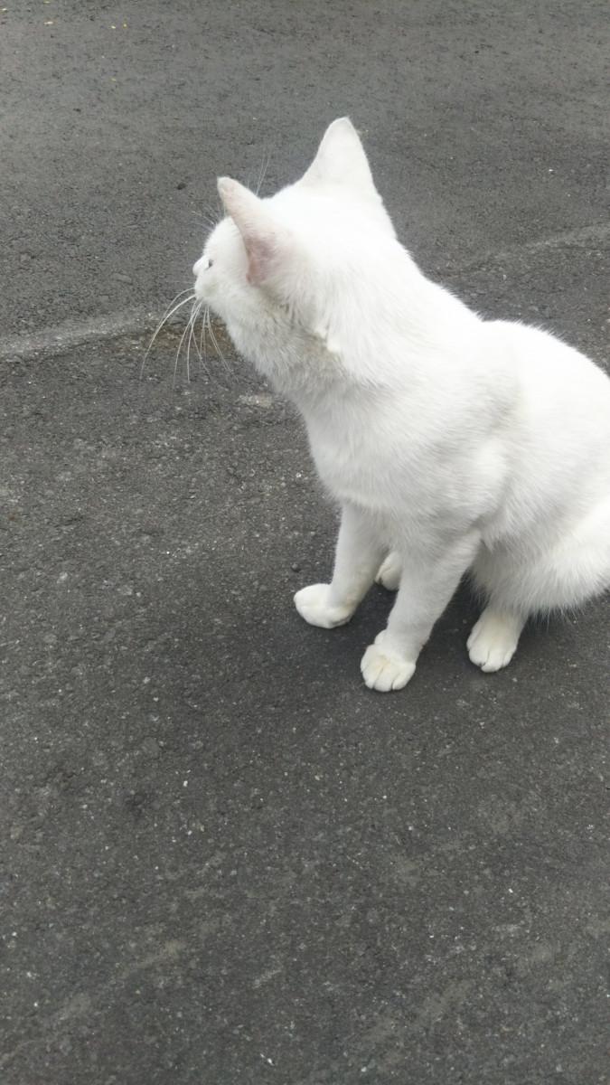 私も向きを変え、少し歩いて後ろを振り返ると、白猫君、まだこちらを見ていました。見送りしてくれていたのかな…?戻って戯れたい気持ちを抑え、病院に行きました。