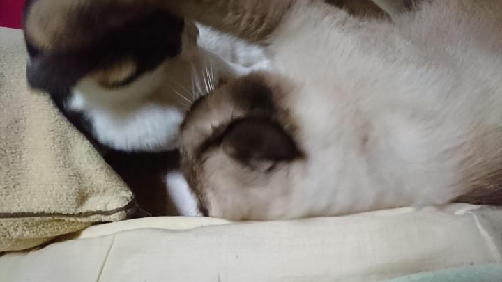 大福と小春は私の側の場所取り合戦。
