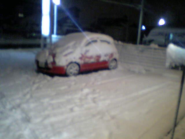 塾が4時からスタートで・・・、4時半には積もりだして、5時以降の生徒が来れずにほとんどお休みでした。そしてノーマルタイヤの私は帰る手段に困りましたよ。だって・・・↓この状態(寒)