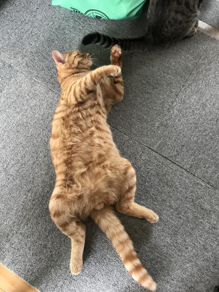 長男 カイン 2017年3月7日 茶虎 去勢済み ♂ マイクロチップ済み フード ヒルズk/d腎臓ケア 朝晩ラプロス 1日60g 次男 アベル 2017年4月22日 雉虎 去...