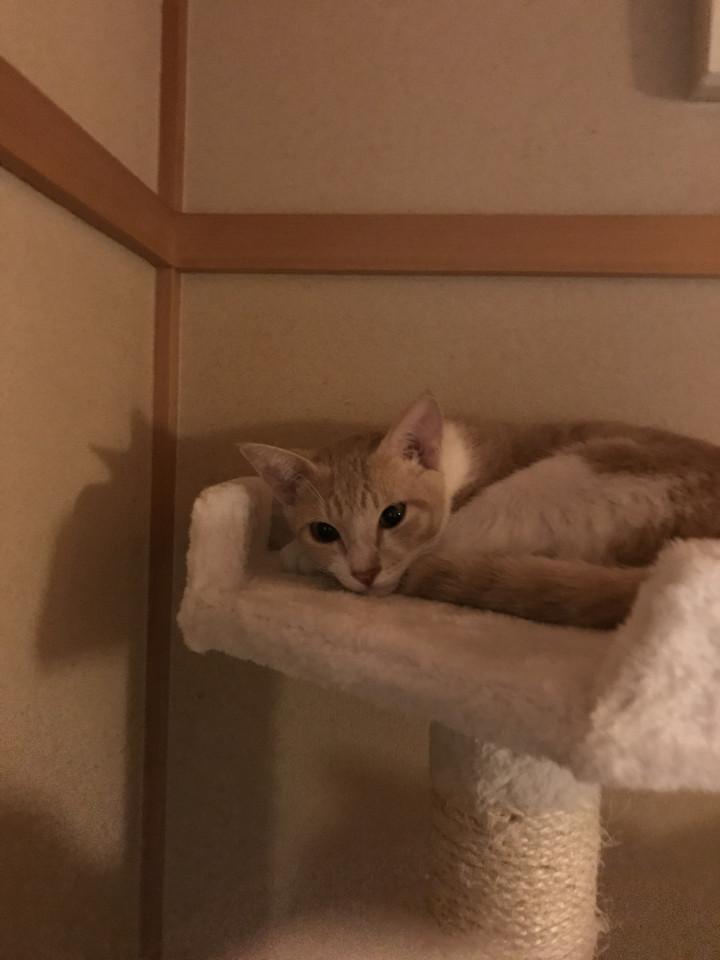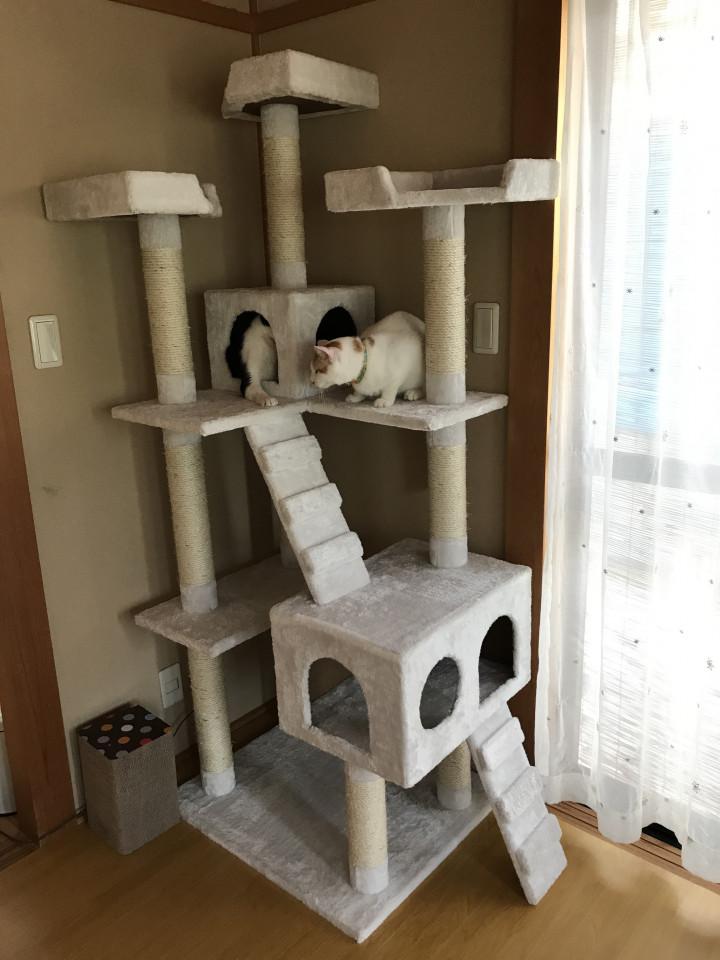 夫と息子がヤイヤイ言いながら、30分ほどで組み立ててくれました。なかなか良い感じ♫前のは天井に突っ張るタイプだったのですが、今回は据え置きタイプにしました。走って駆け上がったら、倒れないかな?と少し心配していましたが、結構、丈夫なんですね。