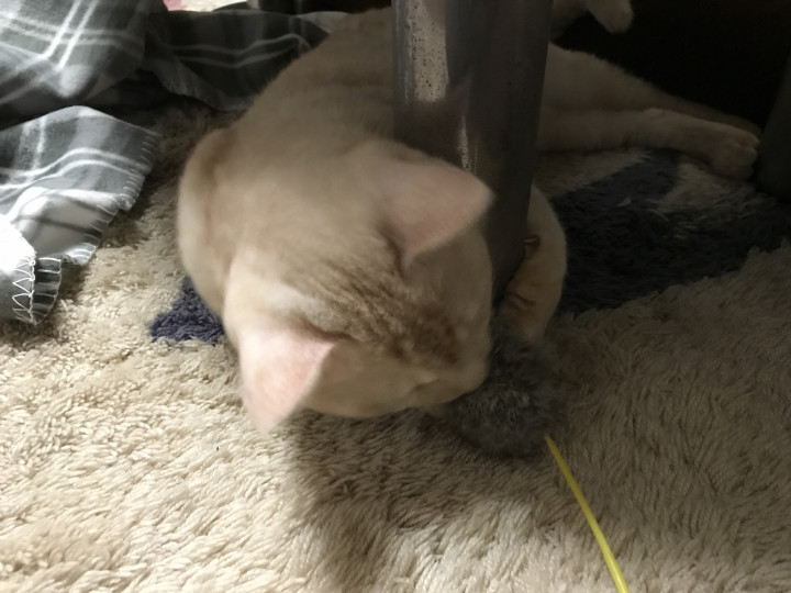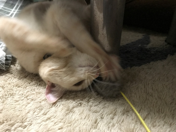 その後、机をガジガジし始めたので猫じゃらしで遊び