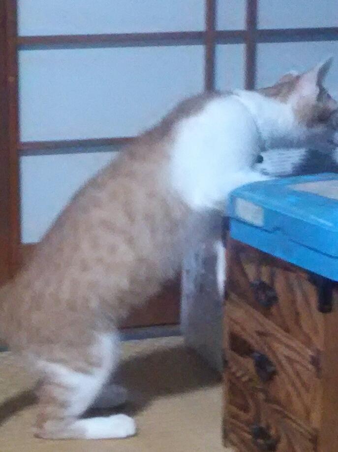行ったり、居間のテーブルに初めて乗ったりしてましたが、今の一番は押し入れの