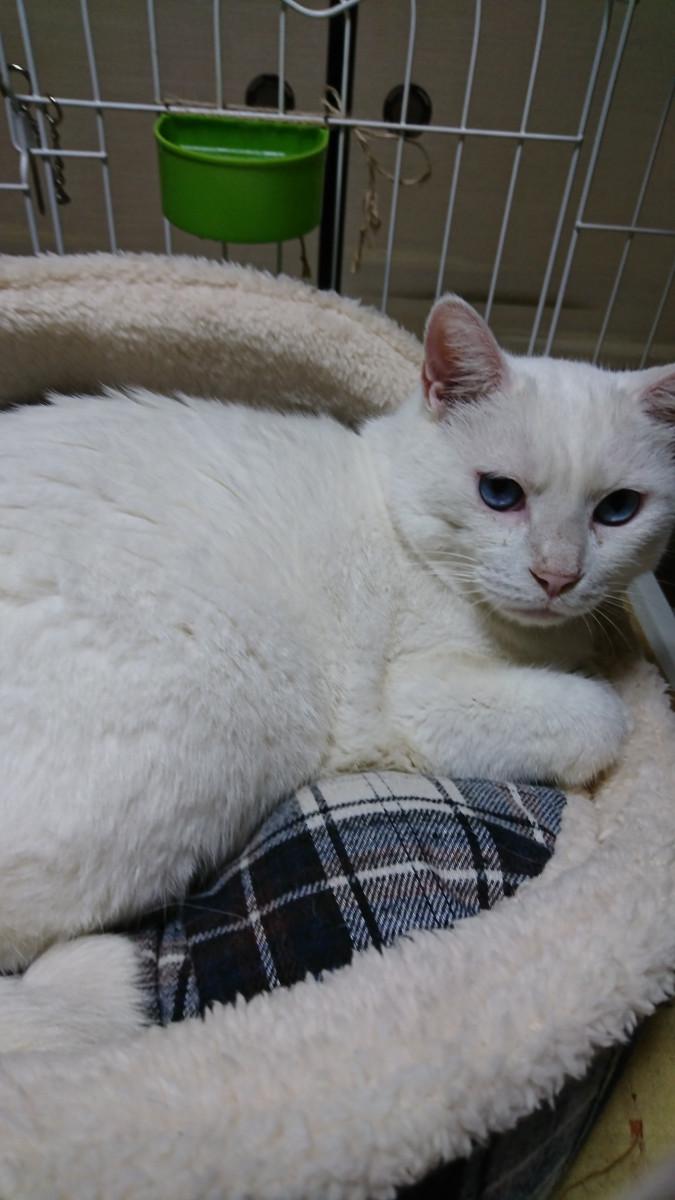 猫ベッドをケージの2段目に設置してみたら、シロちゃんビビる!