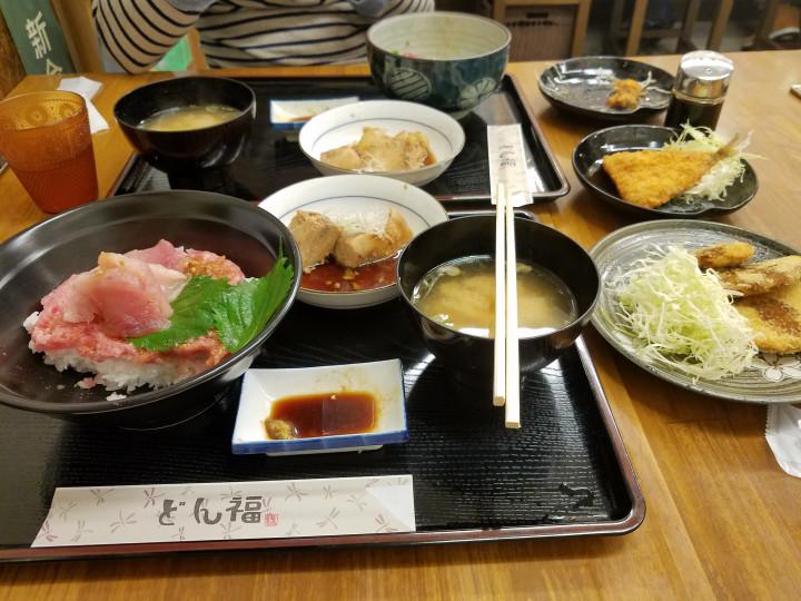 で、お値段は1180円、どの丼にもアラ汁とマグロの身の煮物が付いてました。