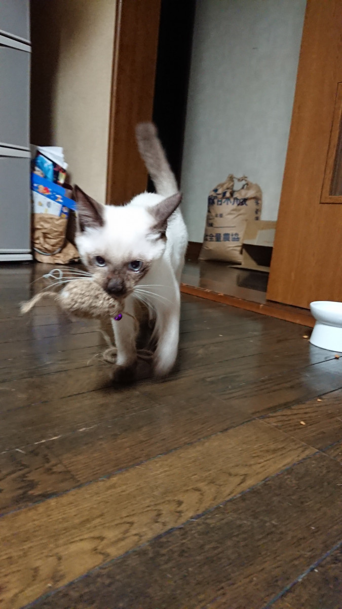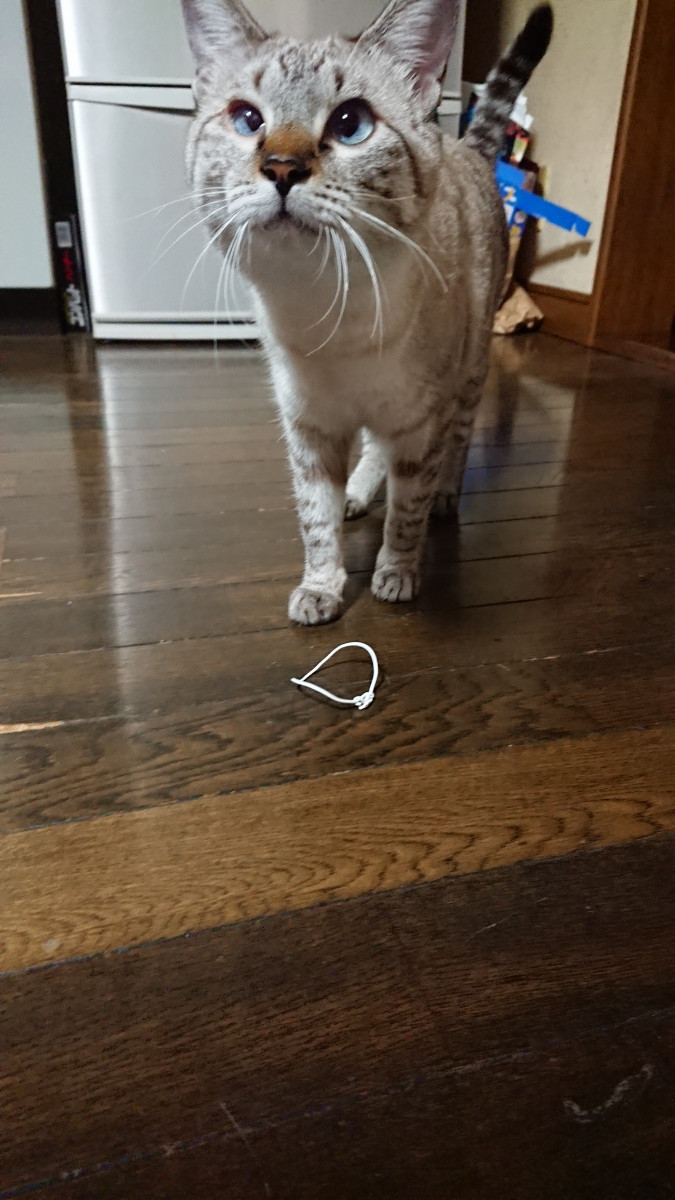 今日もラテさんは 針金を持ってきては遊びの催促。