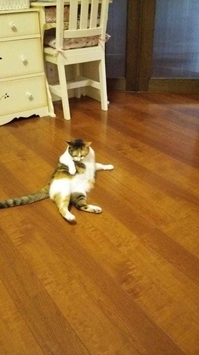 あ、パパちゃんが「ふく、自分のケツ舐めてる!きったね!」って言ってたのですが、本当ににゃんこ三匹面倒見て来たのだろうか…