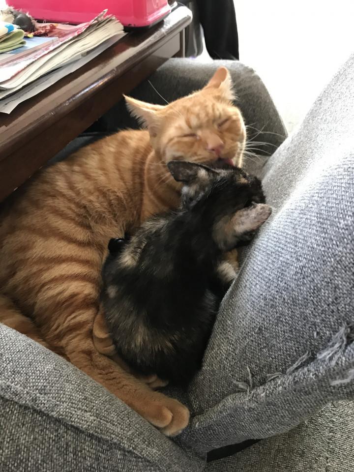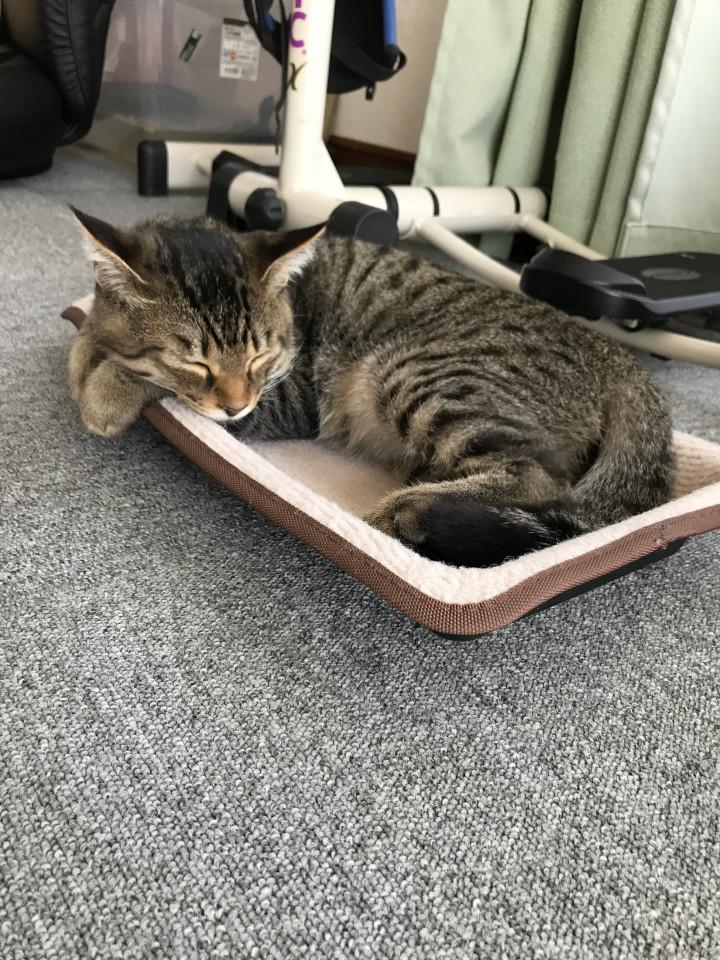 爪とぎの中で寝るアベル( ̄▽ ̄;)