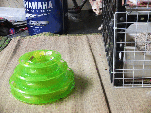 ご飯はケージの中でしか食べさせてないので、お腹がすいたら、ケージに戻るしかないのである。
