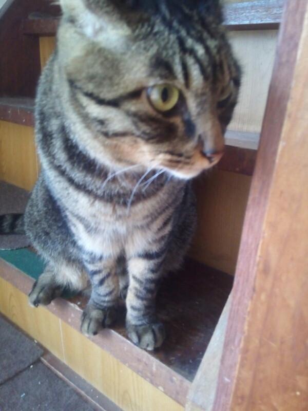 その手すりで猫達はピョンピョン飛んで歩行しています。