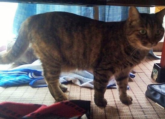 あえてまだ高い所に自分から行かないので、階段の上り下りと爪研ぎで判断では