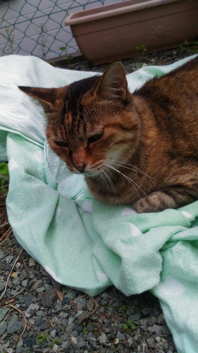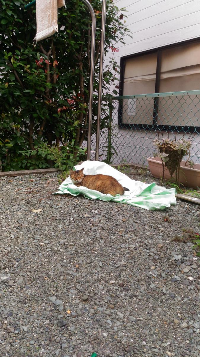落ちた洗濯物の上でくつろいでいました(T-T)💕