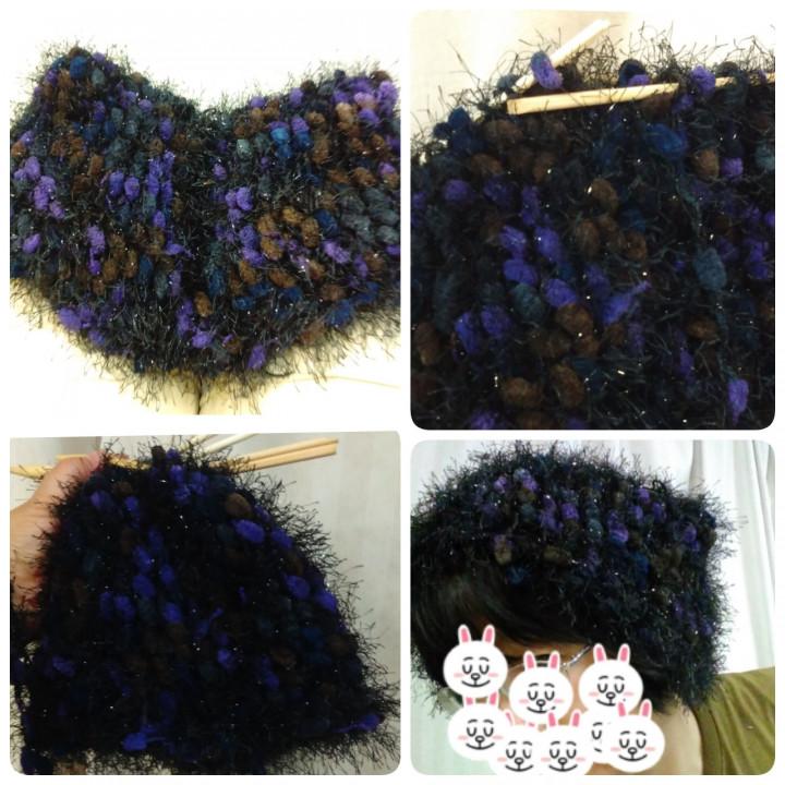 ぷくぷく毛糸モヘアの2本どり、死ぬほど編みづらかったw。
