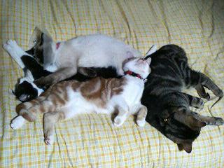 ご飯のお代わりかなと思いつつも添い寝してくれる子やら、覗き込む子もいましたがもう、限界です そのまま、横になって眠りこんでしまいました。