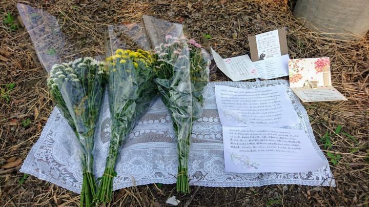 私は犯行現場が見える公道を慰霊の場に選びました。