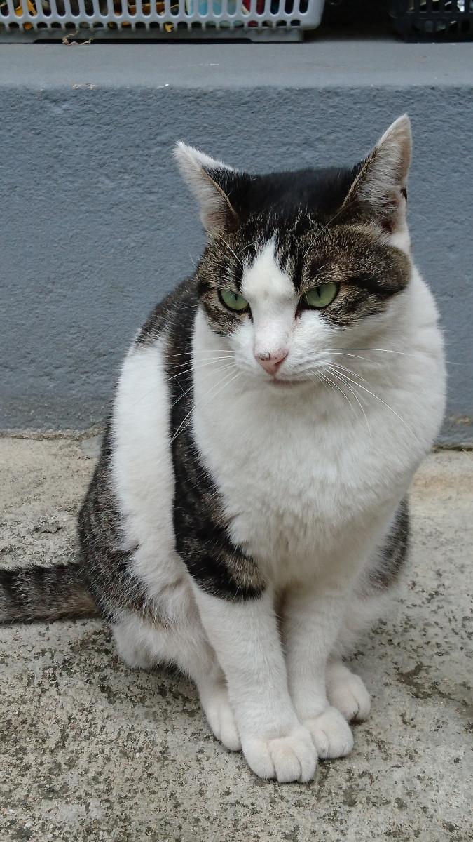散歩の途中で猫1号が急に道の真ん中で座り、そしてお尻を少しあげました…