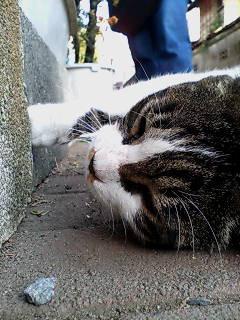 遊歩道に猫が落ちてました。近づくと「にゃあ~」と鳴いたので、腰をコスコスしてあげたら、ゴロゴロと転がっちゃいました。